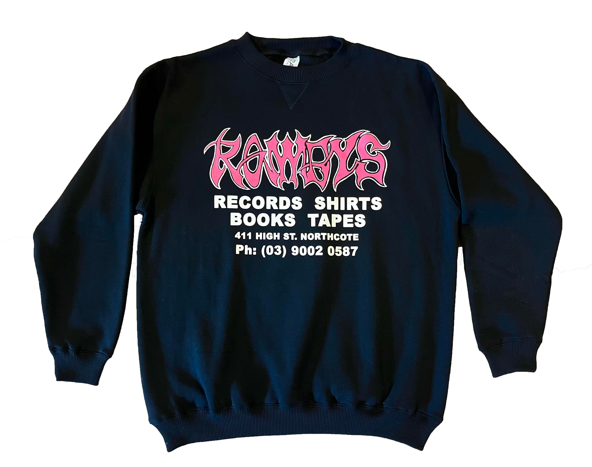 Screen printed on Black Ramo Crewneck jumpers by Too Far Gone